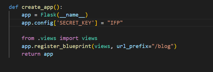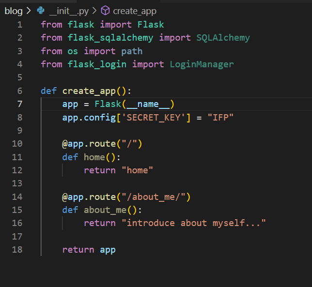 다음으로 6번째 줄은 create_app()이라는 함수를 선언해, 이를 호출해 쓸 수 있게 만들어 준 것이다.