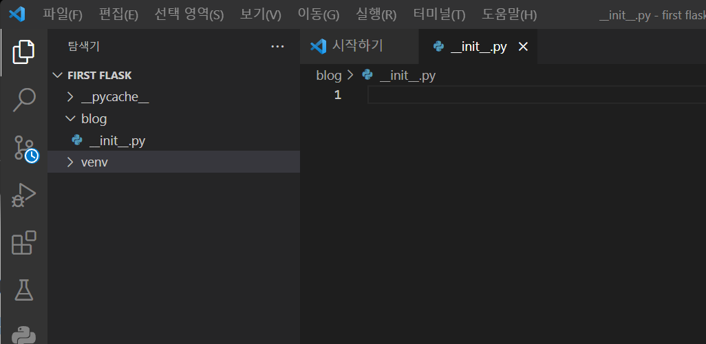 먼저 실습을 위해 blog란 이름의 폴더를 생성하고, 그 안에 __init__.py라는 이름의 파일을 생성한다.